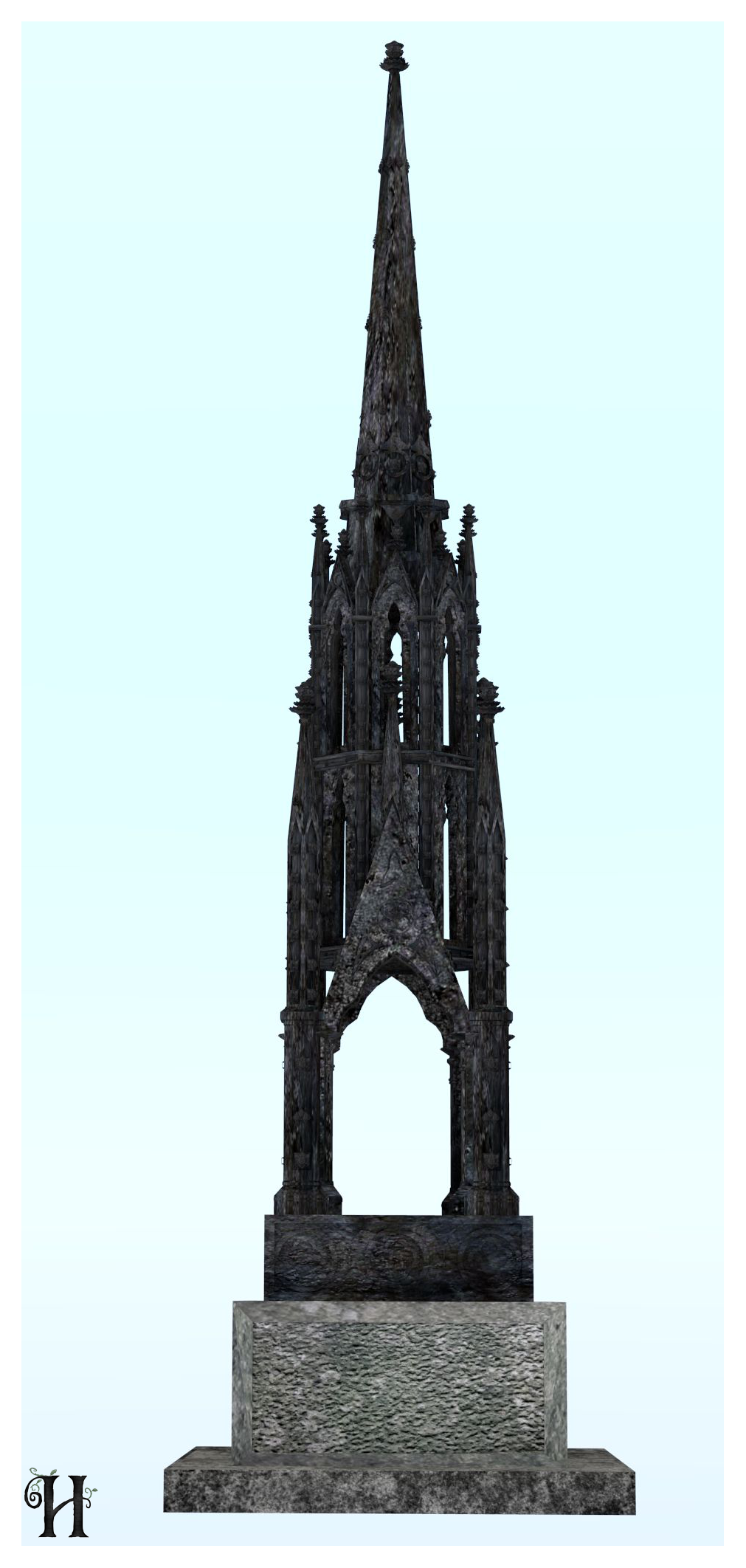 The monument has been represented as it is today, using original, photographic textures from the monument, such as the rough and matte iron finish. An alternative interpretation would be to texture the model in a newly cast form in the 1860s to show what it would have looked like in that period. I have intentionally removed the model from the cemetery location as I wanted the focus to be on appreciating architectural form and to highlight this previously overlooked monument as noteworthy to Hull’s heritage environment.